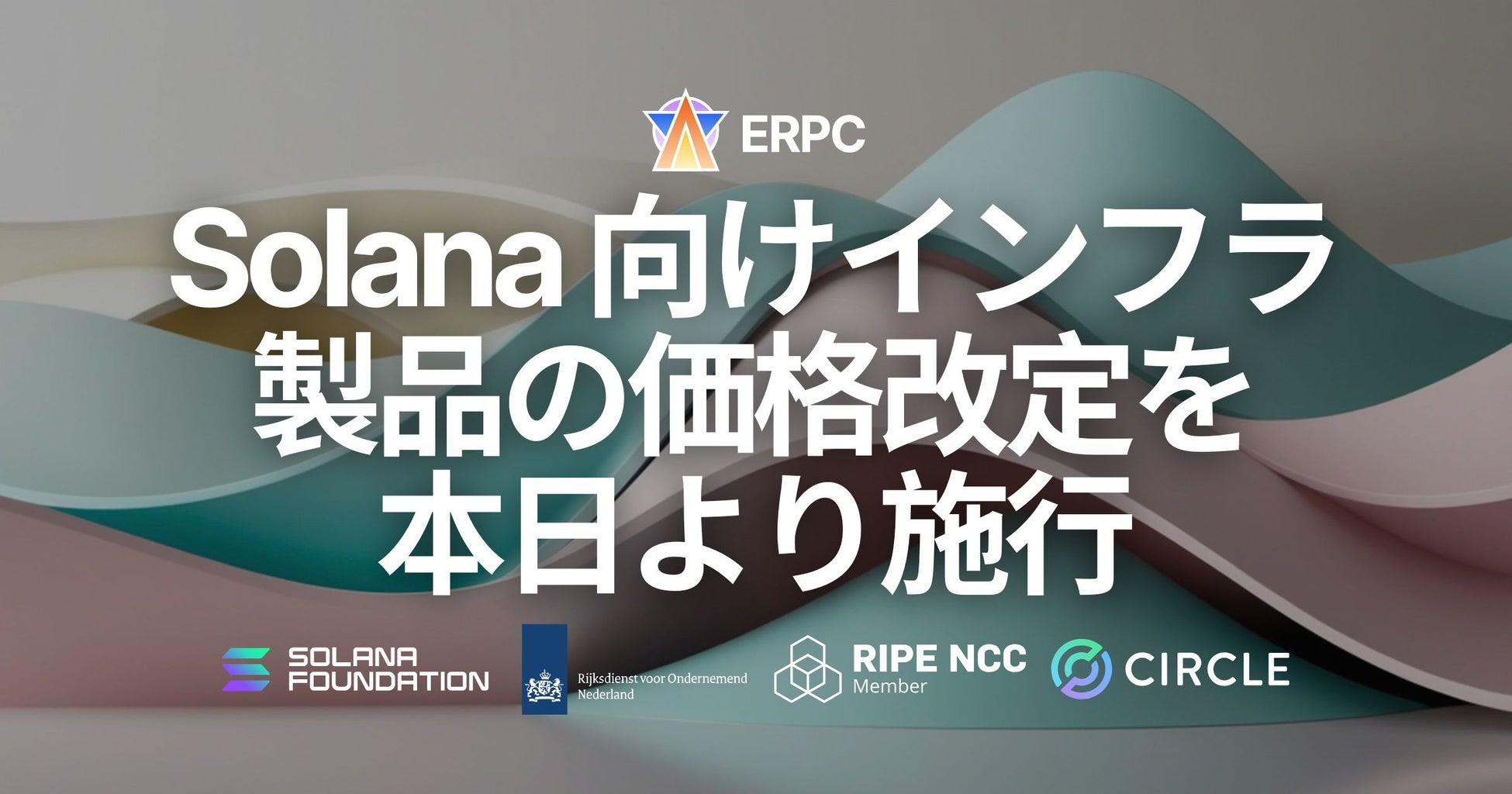 ERPC、Solana 向けインフラ製品の価格改定を本日より施行 ― プレミアム品質を維持したまま、拡大を最優先する方針は変わらず