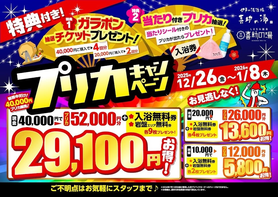 キスケ株式会社(本社:愛媛県松山市)は、年末年始期間中も、運営する各施設にて休まず営業いたします。日頃よりキスケグループをご利用いただいている皆さまへ、心より感謝申し上げます。