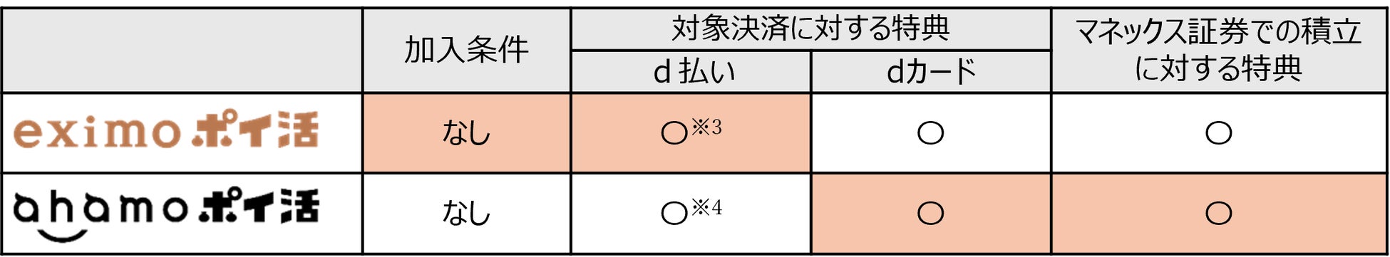 さらに、「eximo ポイ活」のみの特典としていた「マネックス証券での積立に対する特典」を「ahamo ポイ活」に追加し、「ahamo ポイ活」のお客さまも金融サービスのご利用でさらにお得にポイントをためていただけるようになります。
