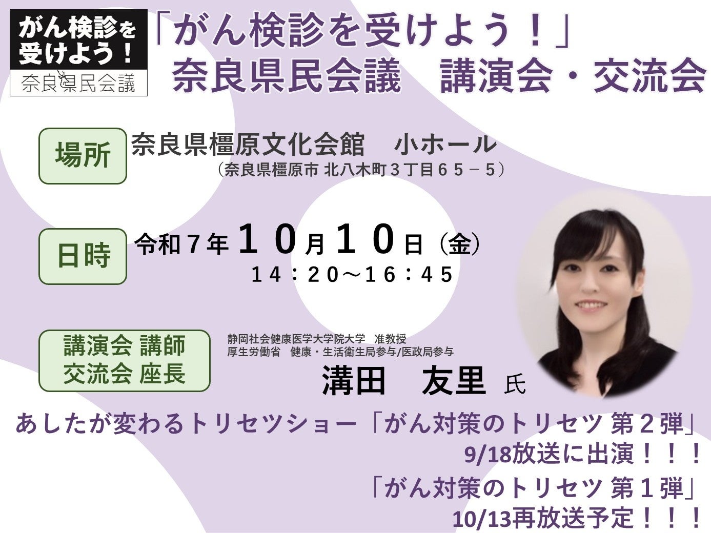 ● イベント名: 「がん検診を受けよう!」奈良県民会議 講演会・交流会