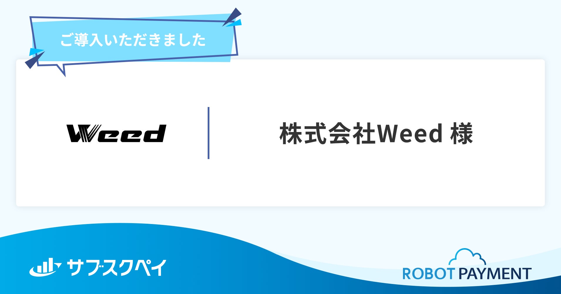 株式会社ROBOT PAYMENT(本社:東京都渋谷区、代表取締役:清久 健也、証券コード:4374、以下 当社)は、当社が提供する顧客管理・自動課金クラウド「サブスクペイ Professional」を導入した株式会社Weed(以下「Weed」)の導入事例を公開しました。