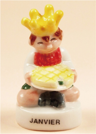 「ガレット・デ・ロワ」には、フェーヴ(陶器でできた人形)が入っており、切り分けた際フェーヴが入った部分が当たった人を王様(王妃)とし、皆に祝福され、幸運が継続すると言われております。