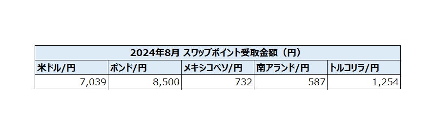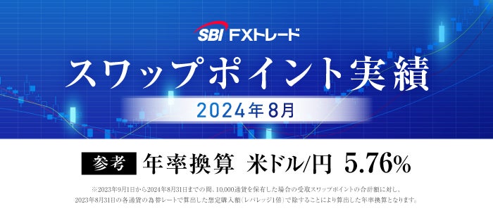 SBI FXトレード株式会社(本社:東京都港区、代表取締役社長:藤田 行生)は、2024年8月のスワップポイントの実績を公表しましたことをお知らせいたします。