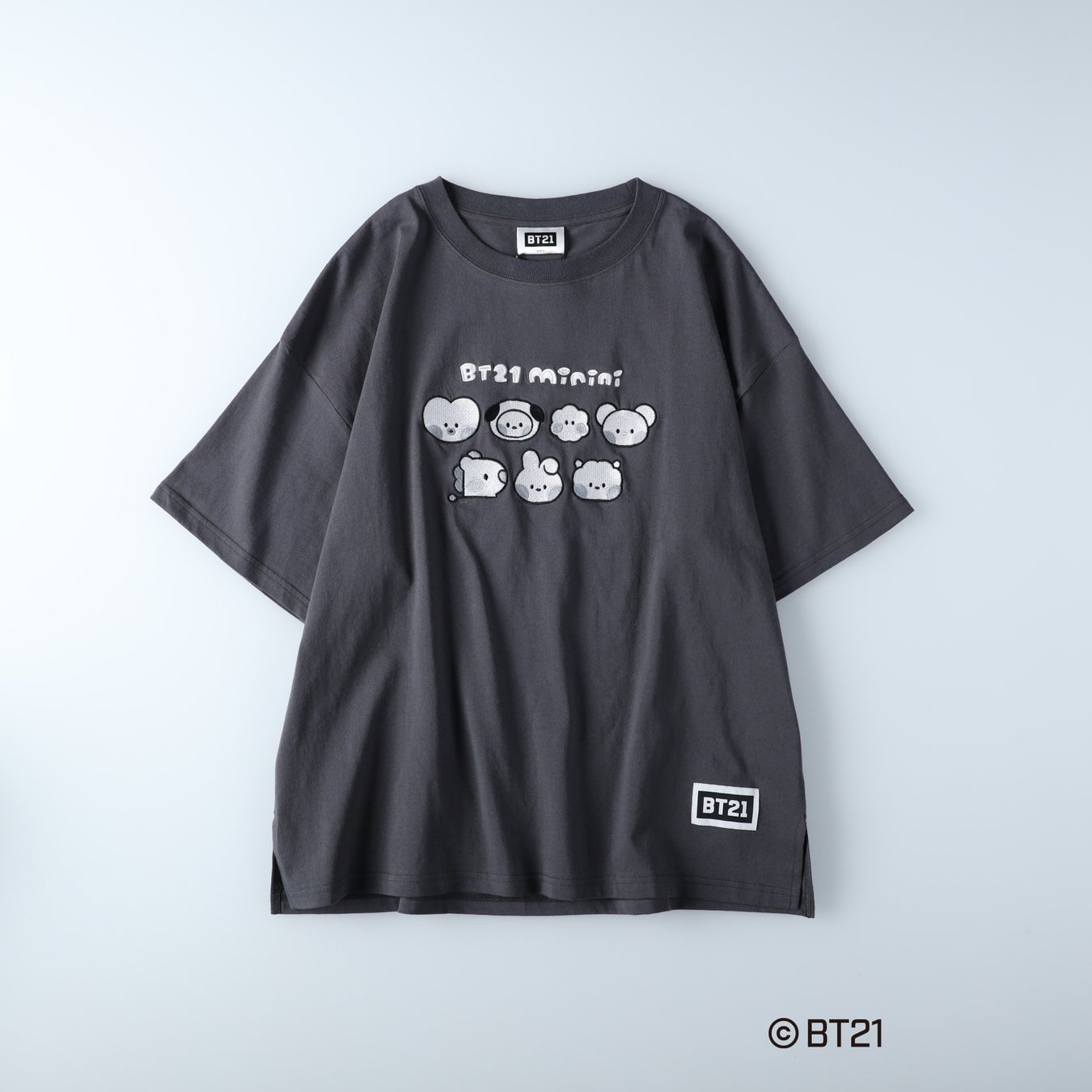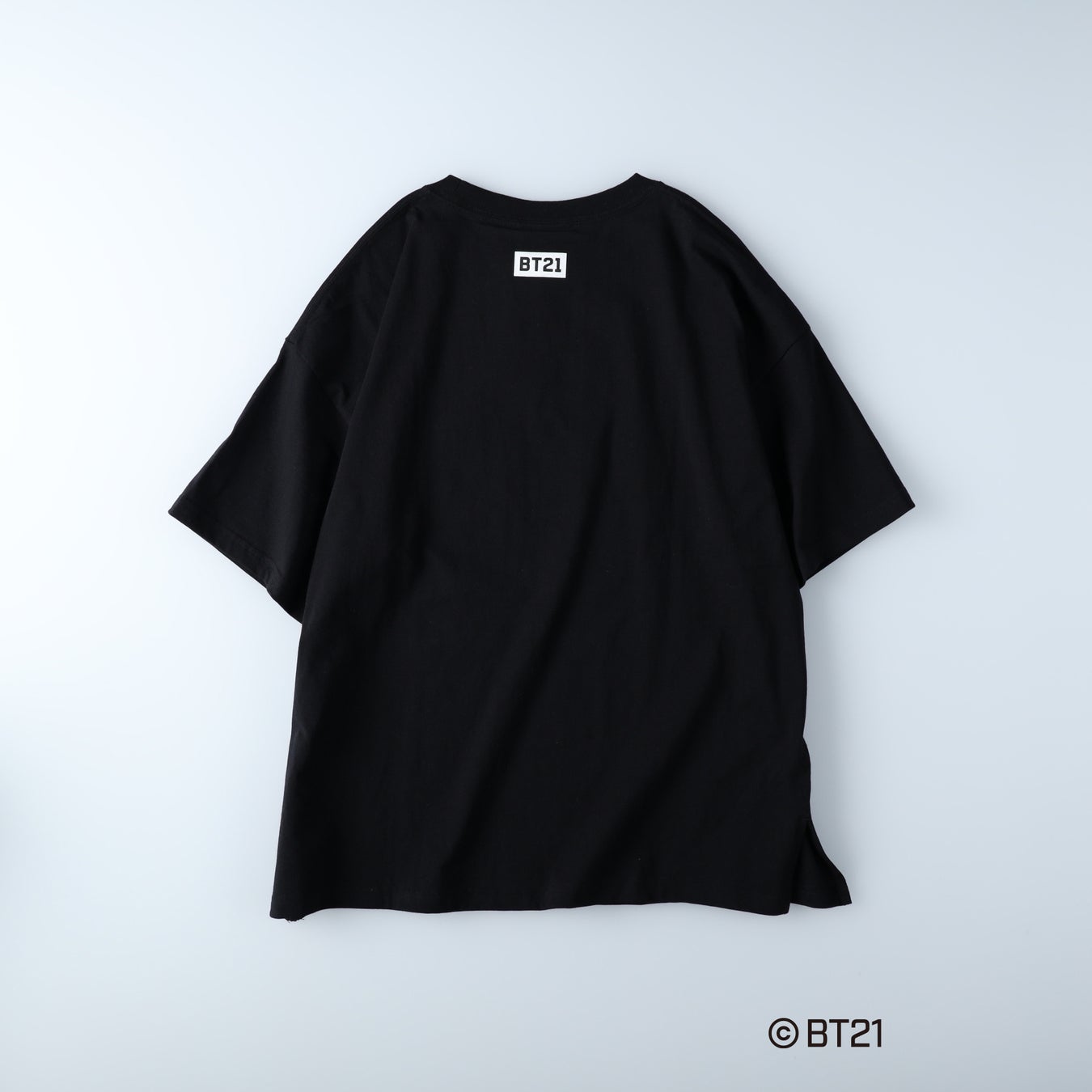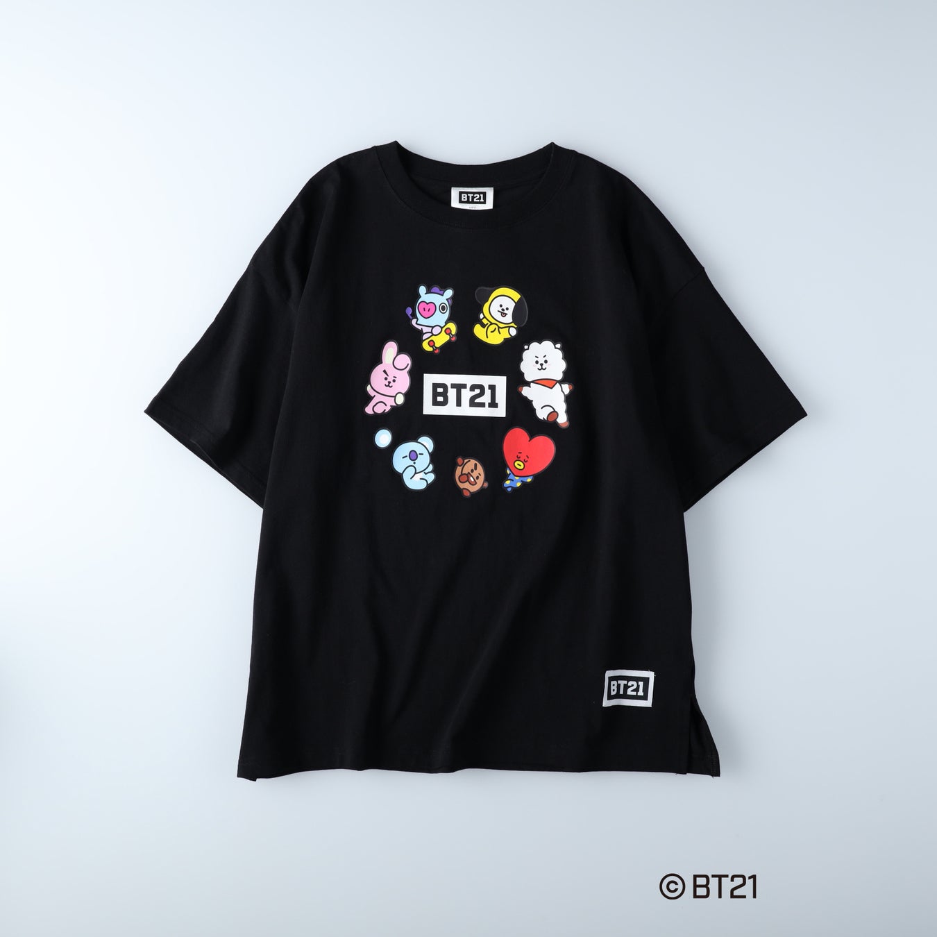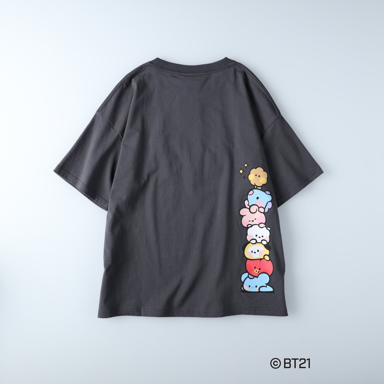 (画像左)横型シール対象商品:BT21バックプリントTシャツ、BT21サークルプリントTシャツ