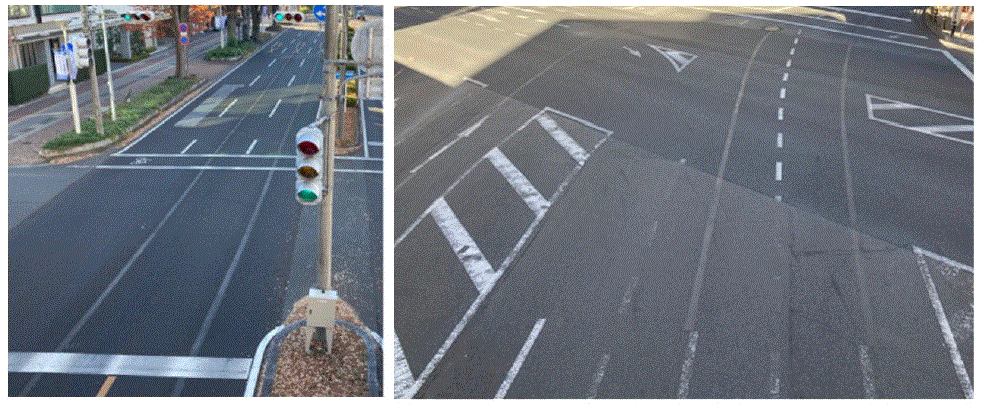 ターゲットラインペイント施工箇所(左:JR前橋駅前通り 右:国道50号本町2丁目交差点内)