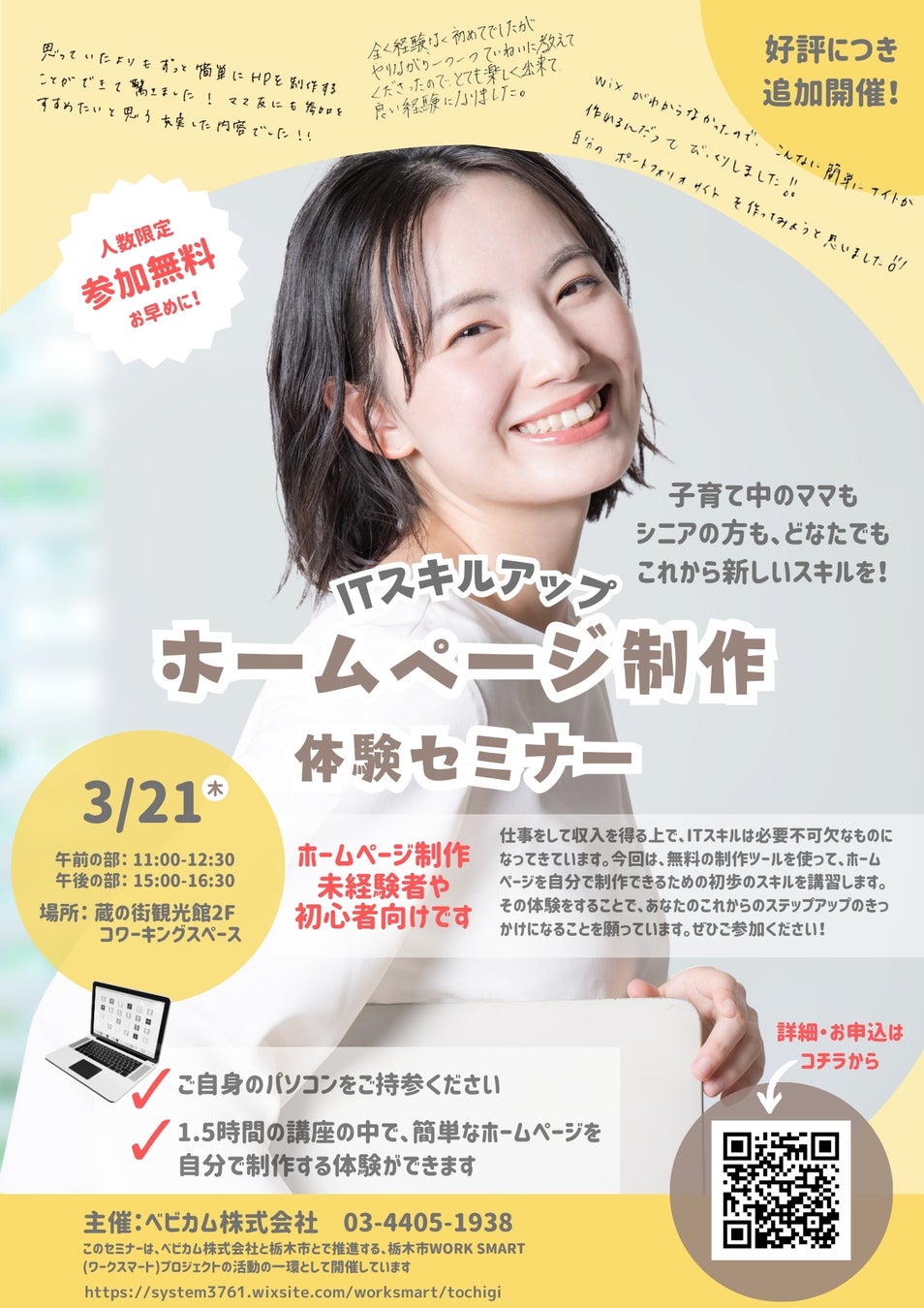 栃木市で 3/21(木) に開催 これからチャレンジする初心者に向けたホームページ制作体験セミナー【無料】 〜参加者募集中〜