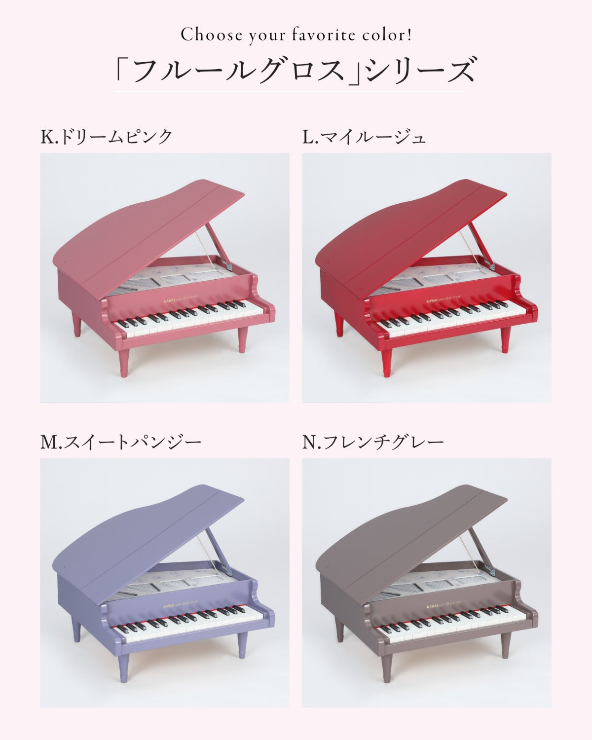「grirose」のランドセル・20モデルのうちからお選びいただいた1つと同じ色のミニピアノをお届けいたします。
