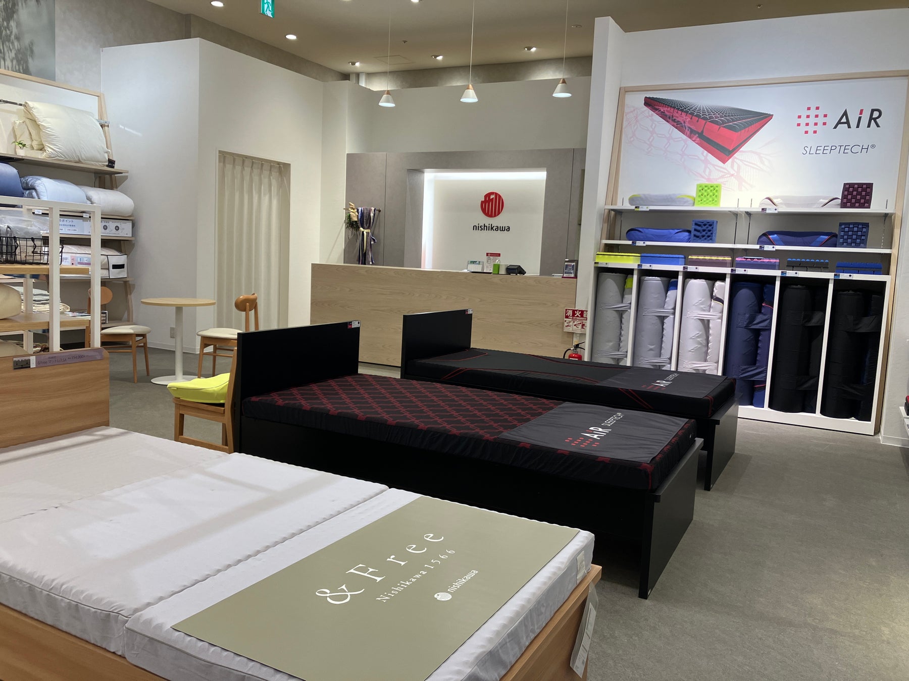『nishikawaショップ』は、コンディショニング・マットレス[エアー]や、快眠寝具トータルブランド「&Free(アンドフリー)」、後頭部から首にかけてのラインを細かく測定してつくる「オーダーまくら」など、睡眠ソルーションを提案するnishikawaの人気アイテムが揃う充実の商品ラインナップです。また、お客様の全身を撮影し、個々の体型に合った寝具を導き出す寝具測定アプリ「ピマピッタ」や、オーダーまくらやマットレスのフィッティングに必要な体型の計測に用いる最新測定機器も充実。導き出した結果をもとに、睡眠や寝具にまつわる専門知識を持つスタッフが、お客様一人ひとりに合った商品をご提案いたします。