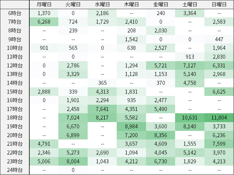 こういった時間帯に当てて放映していたことが、高い検索効率を記録した理由といえそうです。
