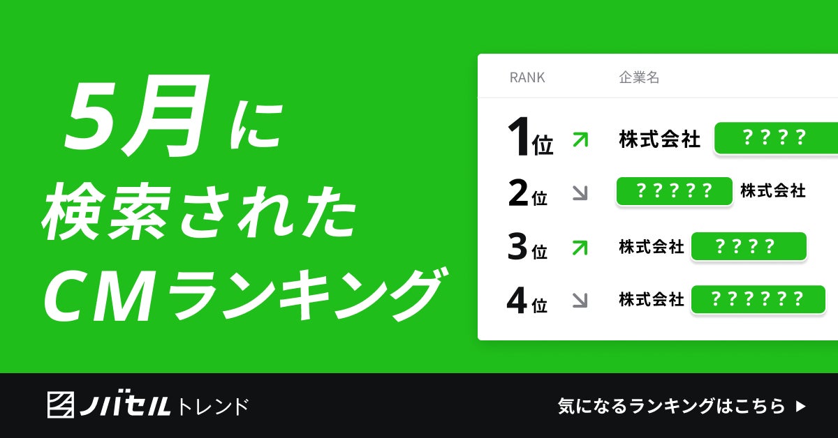 あらゆるテレビCMの指名検索スコアが可視化できる「ノバセルトレンド」にて、2023年5月の指名検索スコア順テレビランキングをご紹介します。