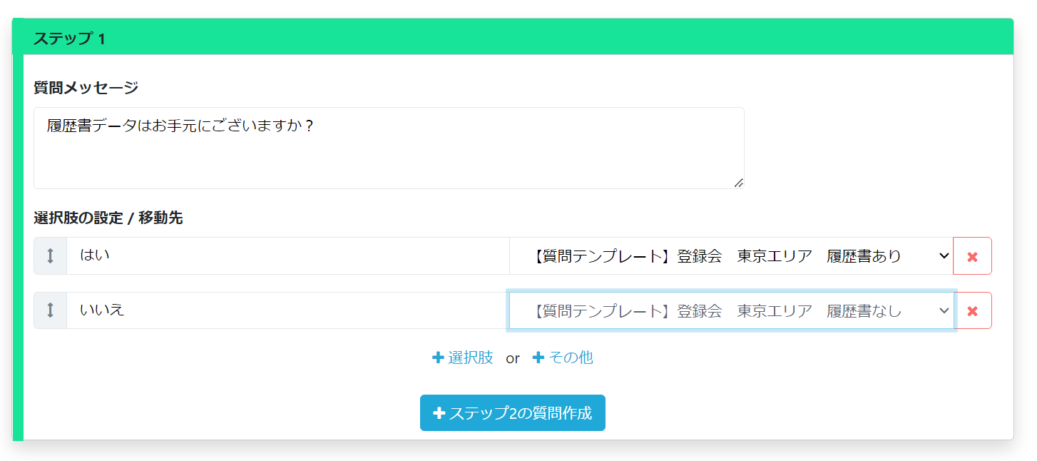※分岐はステップ3まで設定可能