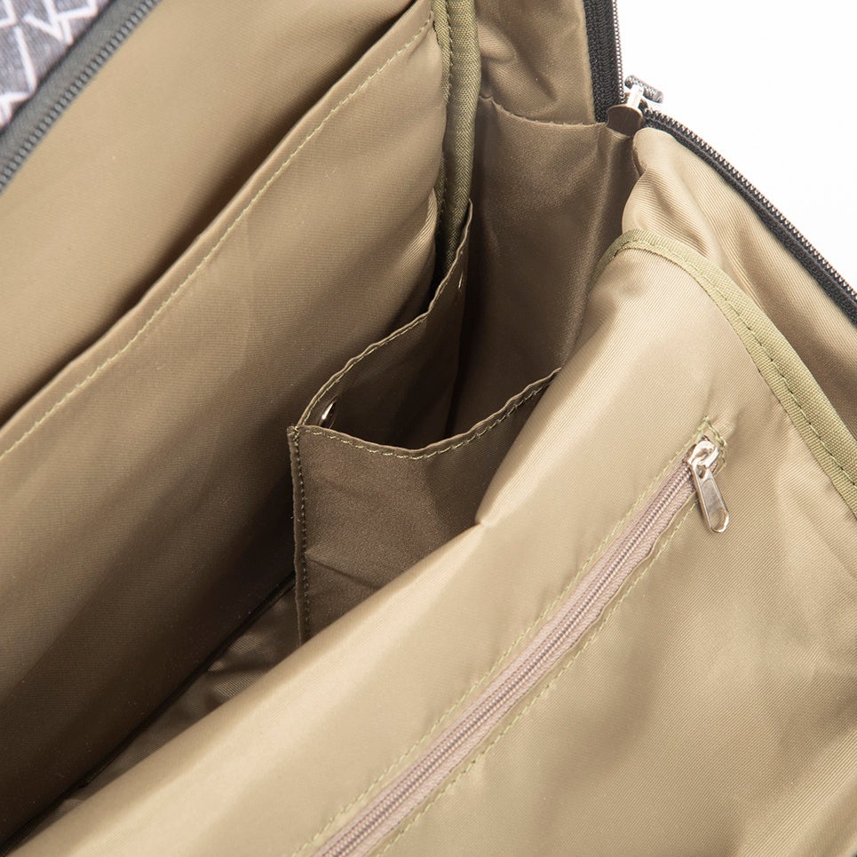 左右からアクセスできるフロントポケットの他、内装には書類の収納に便利なスリーブポケットや、中身が飛び出さないファスナーポケット、中身が一目でわかるオープンポケットが付いています。