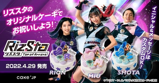ケーキ専門通販サイト「Cake.jp(ケーキジェーピー)」を運営する株式会社Cake.jp(本社:東京都新宿区、代表取締役:高橋 優貴)は、新感覚ダンサブルドラマ「リズスタ -Top of Artists!-」とのコラボ商品として『朝陽 美羽』と『星神 凛音』、『天宮 翔太』のオリジナルケーキを4月29日(金・祝)より販売開始します。