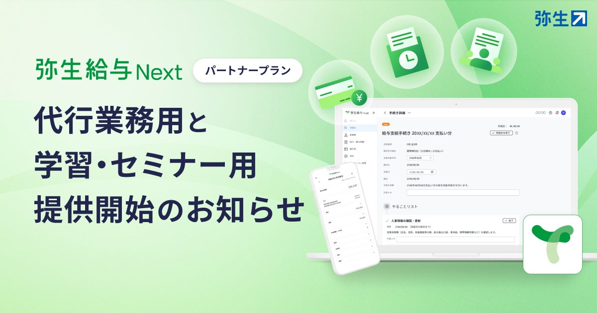 弥生株式会社(本社:東京都千代田区、代表取締役 社長執行役員 兼 CEO:武藤健一郎、以下「弥生」)は、弥生のパートナーがご利用いただけるクラウド給与サービス「弥生給与 Next」の「パートナープラン」の提供を開始しました。これを記念し、2025年10月から2027年3月末※1まで、通常は従量課金となる事業所データ数の超過分も含めて、無償でご利用いただける「パートナープランリリースキャンペーン」を実施します。