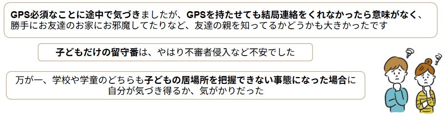 アンケートからは、「放課後を安全に過ごせるか」を心配する保護者の多く、また、そのために事前に準備すべきことが多くあることが分かりました。