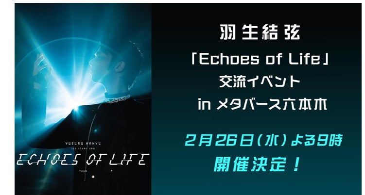 2月26日(水)21時より一夜限りのイベント「羽生結弦 『Echoes of Life』交流イベント in メタバース六本木」が開催決定!千葉公演・千秋楽の一部演目を特別上映!