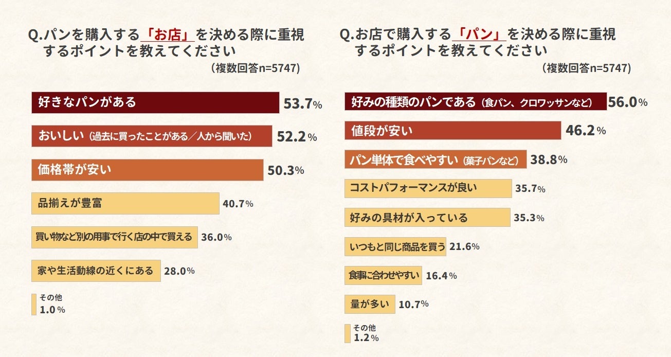 パンを購入する「お店」や、その「パン」を購入する際に重視するポイントを聞いてみました。
