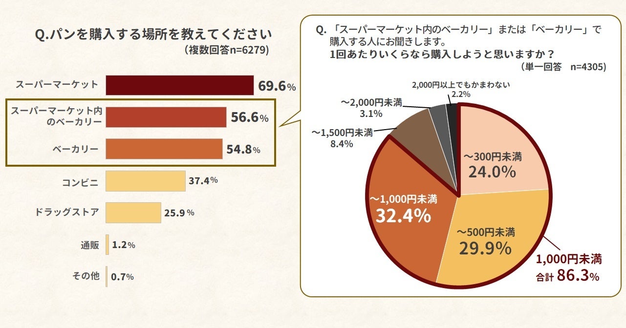 ■パンを購入する場所トップは「スーパーマーケット」 ベーカリーでの予算は「1,000円未満」86.3%