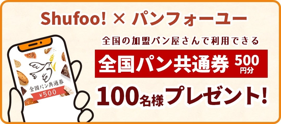 パンフォーユーでは全国のパン屋さんで使えるギフト券「全国パン共通券」を展開しています。今回、パンフォーユーとShufoo!の合同企画として「全国パン共通券」が当たるキャンペーンを実施します。