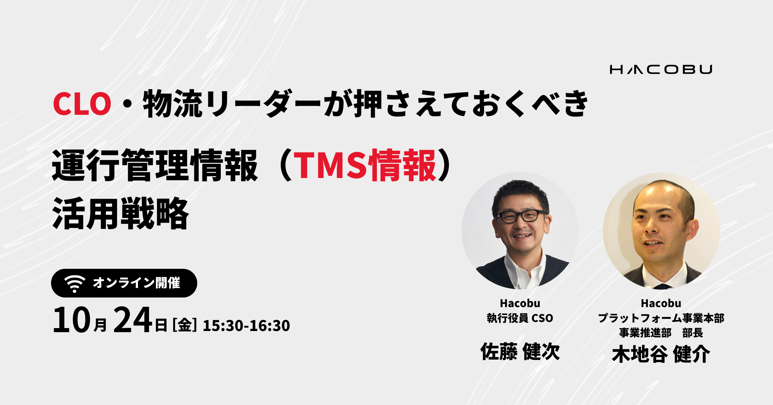 データの力で物流課題を解決する株式会社Hacobuは、2025年10月24日、「CLO・物流リーダーが押さえておくべき運行管理情報(TMS情報)活用戦略」と題し、オンラインセミナーを開催いたします。