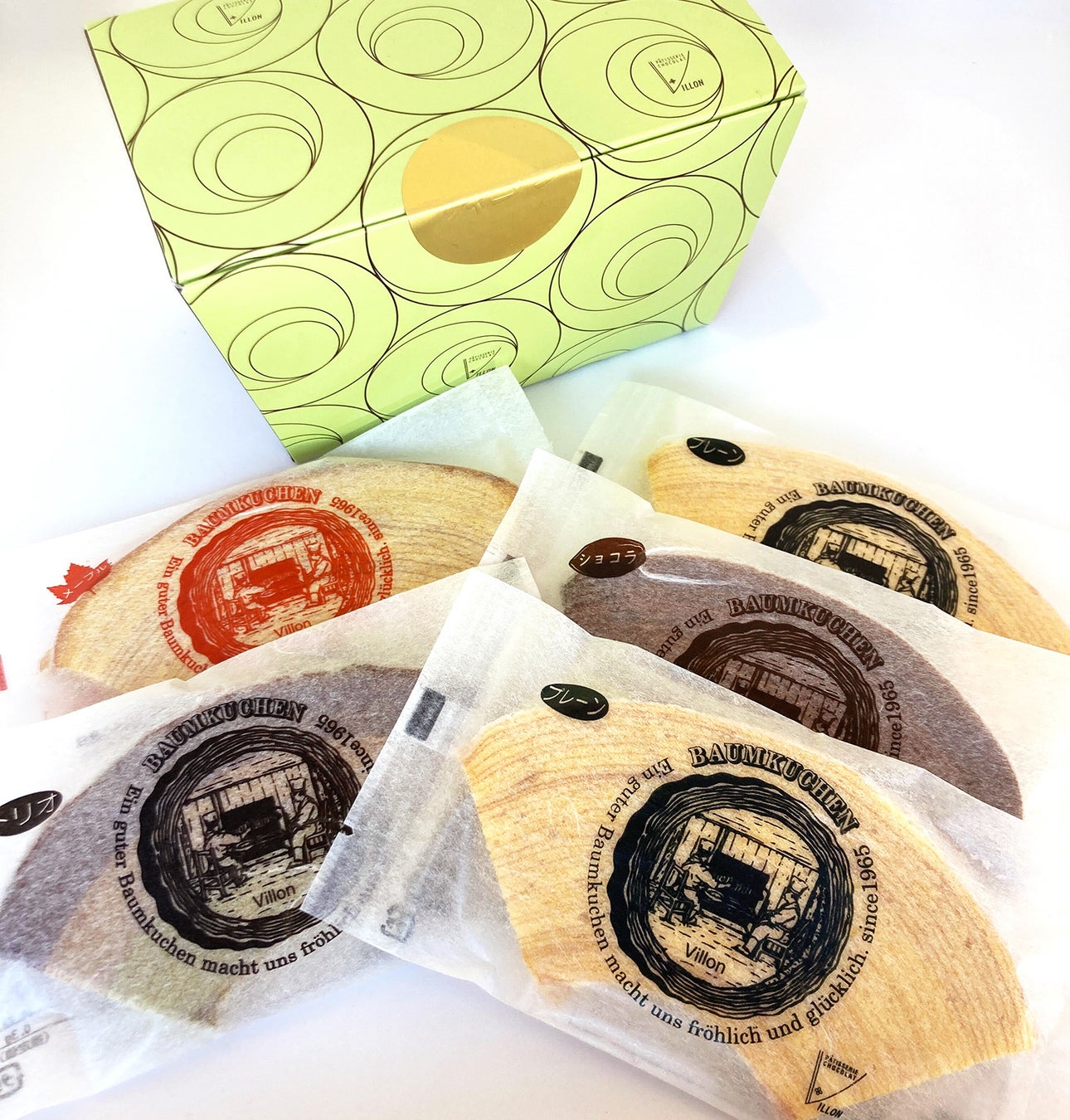 (プレーンバウムクーヘン×2枚、ショコラカットクーヘン×1枚、メープルバウムクーヘン×1枚、トリオカットクーヘン×1枚)