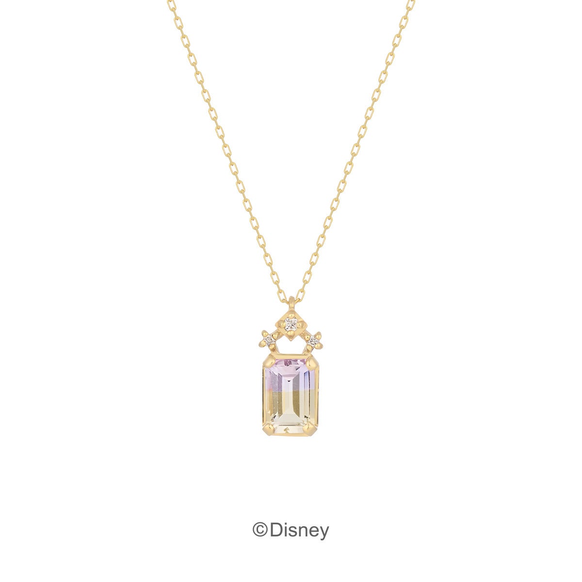 無数のランタンが夜空に浮かぶ、幻想的でロマンティックなシーンを、パープルとイエローカラーのグラデーションが特徴的なアメトリンとダイヤモンドの力強い輝きで表現。可愛らしさは残しつつも、洗練されたシンプルなスクエアデザインに落とし込むことで、幅広い世代に身に着けていただきやすいデザインに仕上げました。「癒し」や「自己の能力を伸ばす」といった石言葉を持つアメトリンが、「ラプンツェル」のような勇敢な一歩を後押しします。