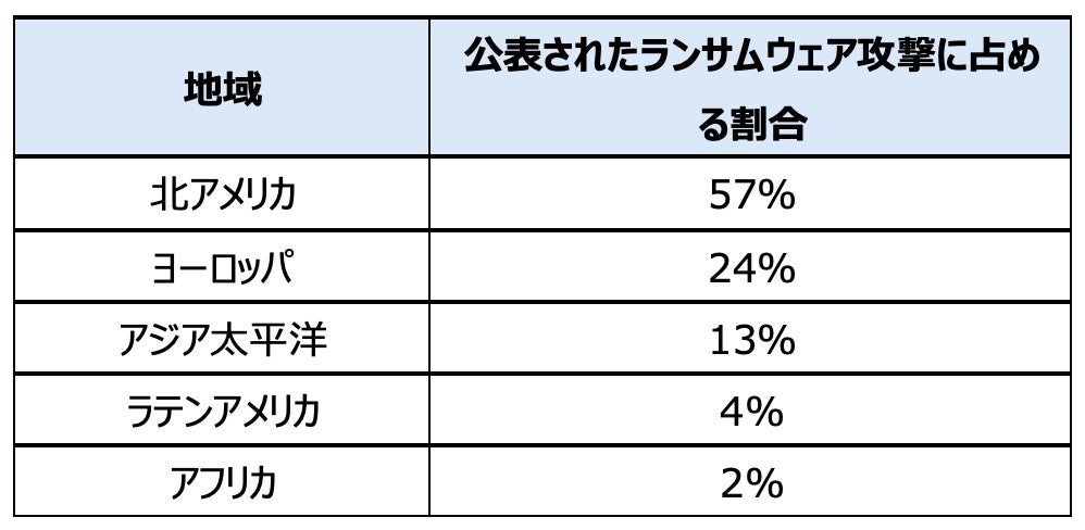 ランサムウェア攻撃は、前年と比べて若干減少してはいるものの、依然として深刻な課題であり、恐喝グループによって1,230件以上のインシデントが公表されています。最も影響を受けたのは北アメリカ地域で、報告されたインシデント全体の57%を占めており、次いで多いのがヨーロッパで24%、アジア太平洋地域が13%でした。業界別では、製造業界が最も強く影響を受け、報告されたランサムウェア攻撃の30%を占めており、ランサムウェアの脅威が様々な業界に広く及んでいることが浮き彫りになっています。保健医療業界が13%でそれに続き、小売・卸売業界は全体の10%を占めました。