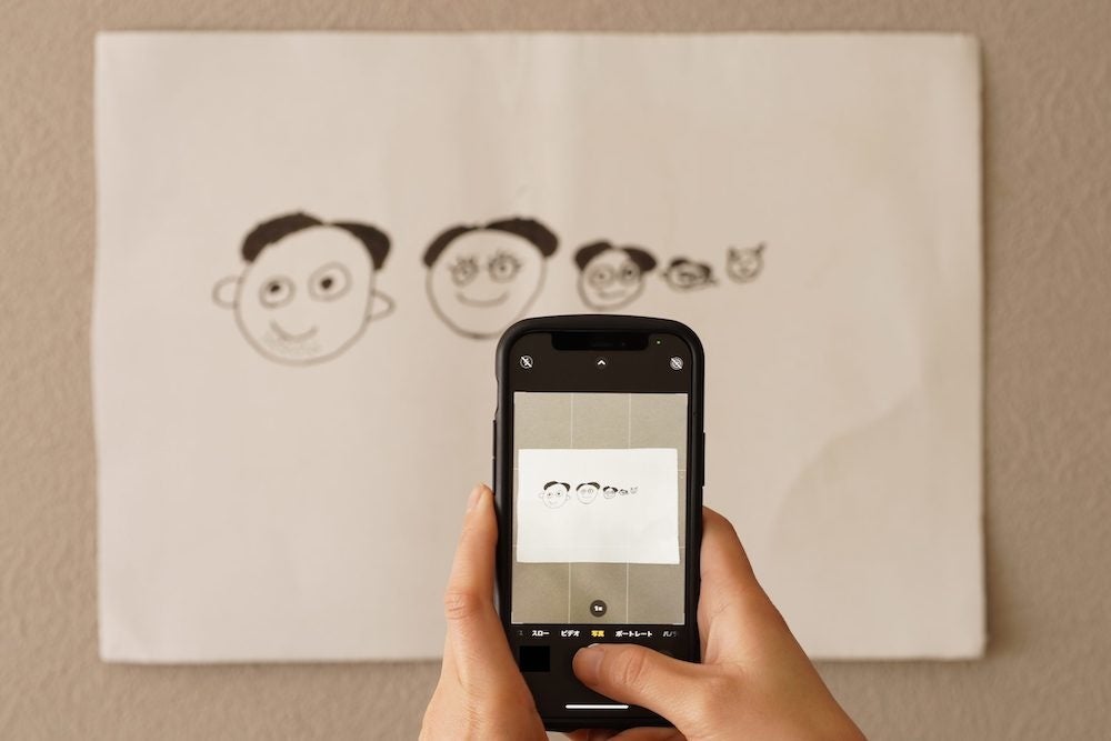 絵をスマートフォンなどのカメラで真上から撮影して画像をお持ち込みください。オンラインショップでも、撮影した画像を送るだけでご注文いただけます。