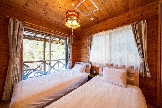 セミダブルベッドルームとシングルベッドルームをご用意。お部屋の好みによって寝室をお選びいただけます。自然を感じる別荘ならではの、心地の良い目覚めで一日を始めることができます。