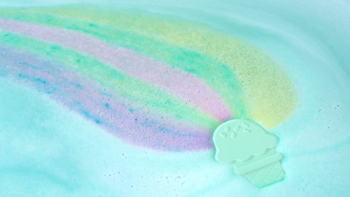 そっとお湯に浮かべるとしゅわしゅわと溶け出し、バスタブはカラフルな虹でいっぱいになります。
