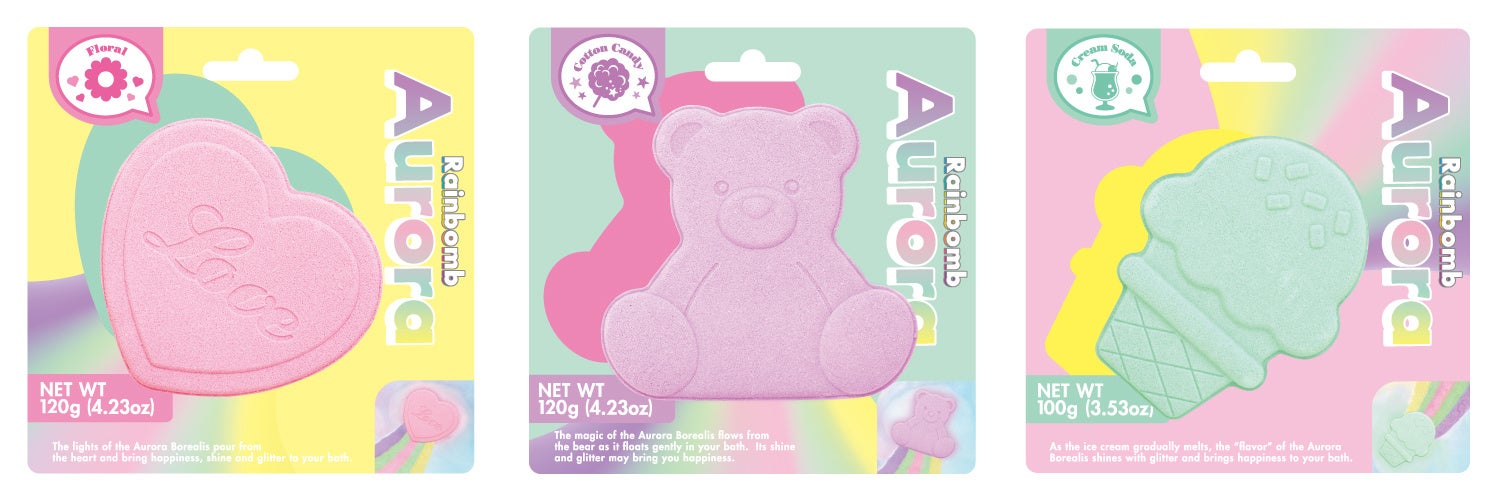 ゆめかわな“オーロラ”があらわれるバスタイム!?メディアから取材殺到中の虹が出る入浴剤『Rainbomb』より、待望の新シリーズ『Rainbomb Aurora』が登場。