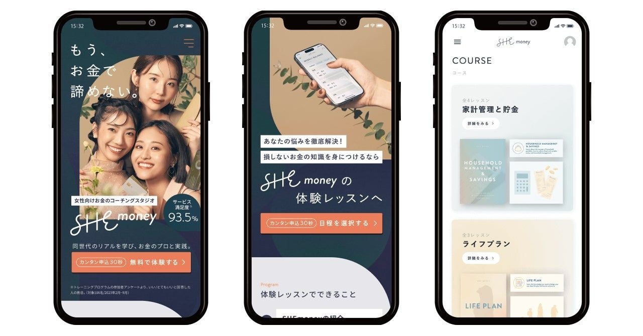 『SHEmoney』は、女性の理想のキャリアや人生の実現のために不可欠なお金の知識の獲得を目指し、2021年にサービスを開始しました。2023年11月には、生活者を取り巻く環境の変化や独自のマーケット調査から、お金の学びに必要な要素は「世代やキャリア観など、自身と近しい属性の方とのリアルな情報交換を経て、実践すること」だと考え、コミュニティとコーチングを強化した「女性向けお金のコーチングスタジオ」としてサービスリニューアルを行いました。個々の状況や目標に合わせてオーダーメイドでカリキュラム作成し、受講生に合わせたプランで受講期間を伴走支援します。