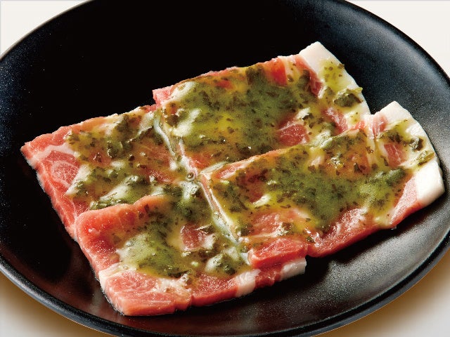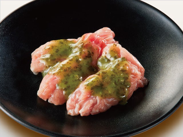 鶏肉の定番「もも肉」をバジルソースと共にお楽しみください。夏にぴったりの爽やかな焼肉です。
