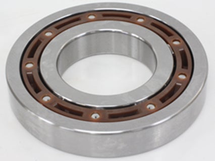 eAxleに搭載される軸受を幅狭化した、超幅狭軸受です。高剛性組合せ樹脂保持器をベースに保持器側面中心に穴を設け、保持器の幅を極限まで狭くする事で軸受の幅狭化を実現しました。