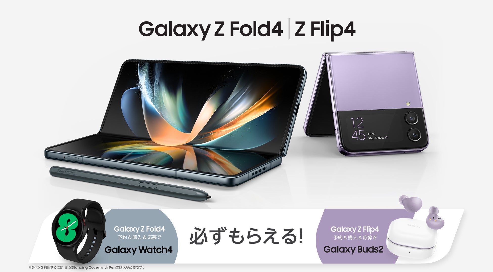 また、対象期間中に対象販路にて「Galaxy Z Flip4」または「Galaxy Z Fold4」をご予約・ご購入・ご応募いただいたお客様全員に、豪華景品をプレゼントする予約購入キャンペーンを実施いたします。