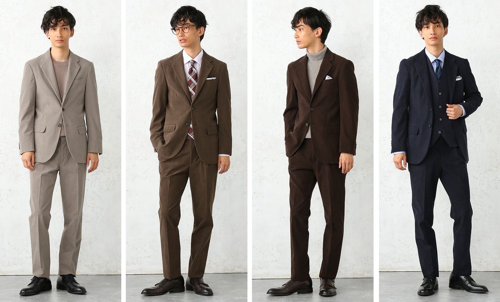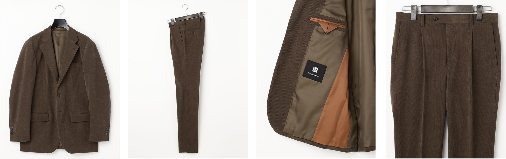 今回の『コーデュロイセットアップ』は、秋冬ムードな素材感を意識した暖かみのあるコーデュロイ素材を採用。リラックスした着心地とビジネスシーンで着回しやすいキレイ目なシルエットを兼ね備えた一着です。