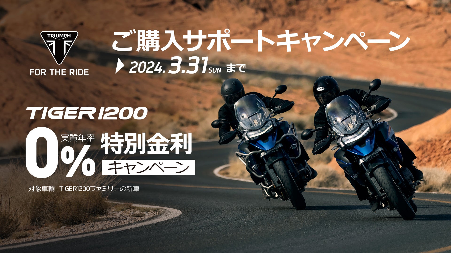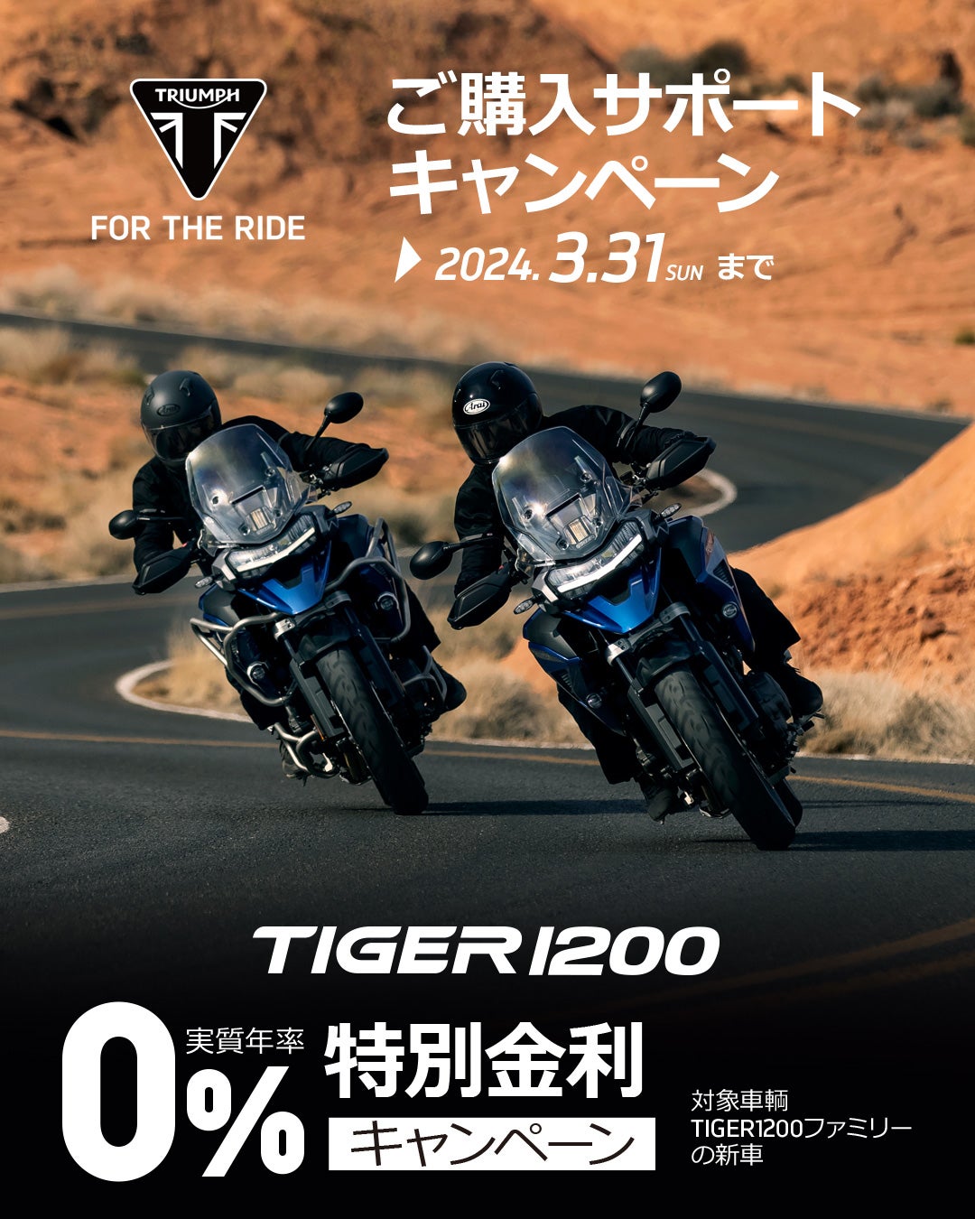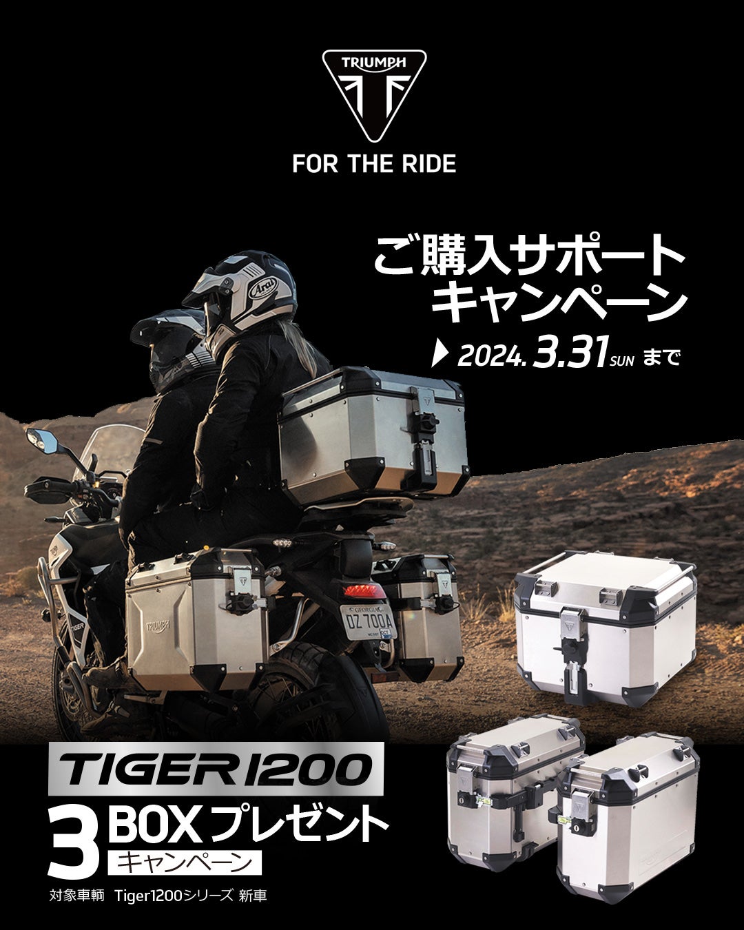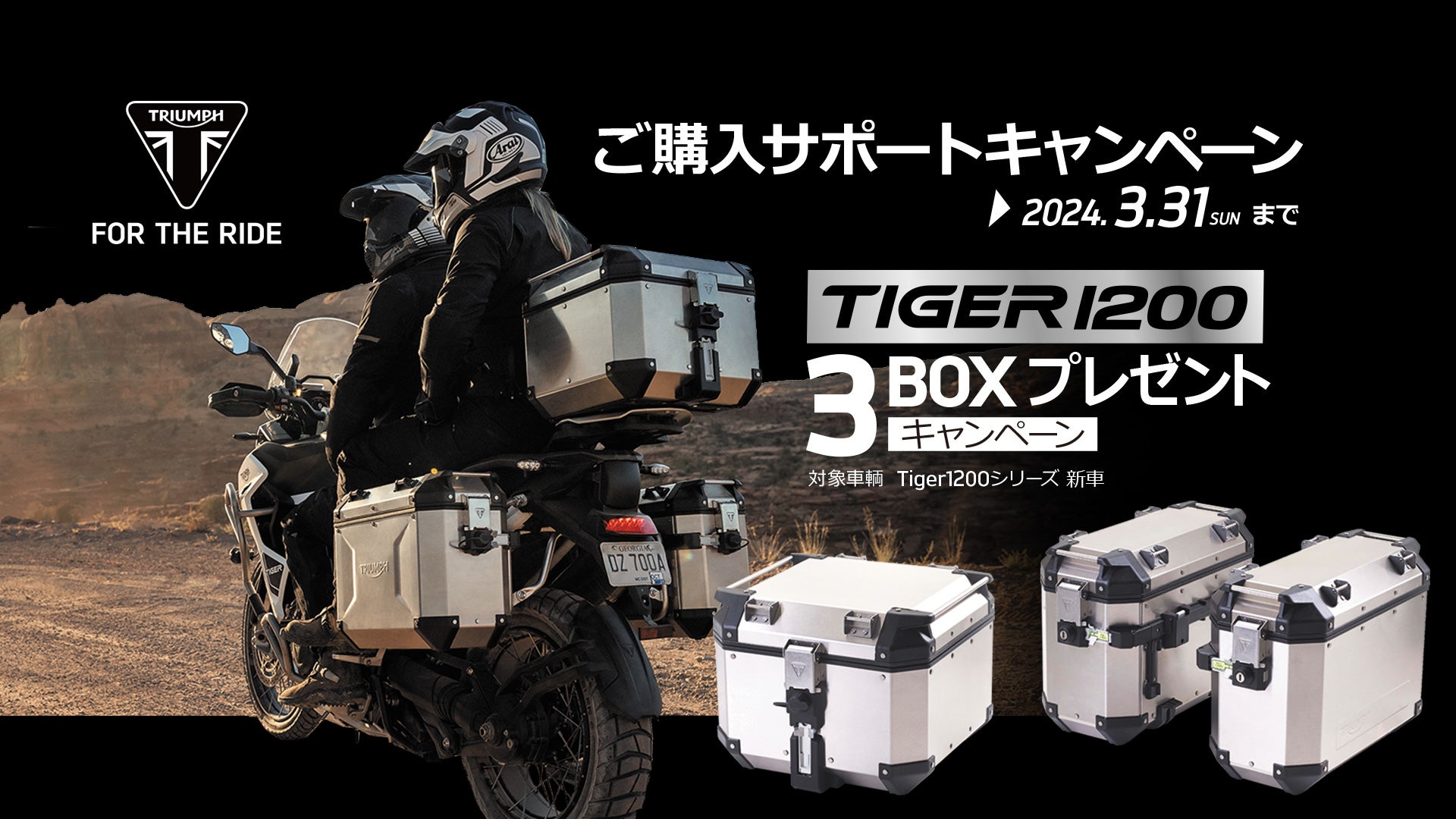 ※3/31までにご登録を完了することが対象の条件となります。※TIGER 1200 3BOXプレゼントキャンペーンとの併用可能