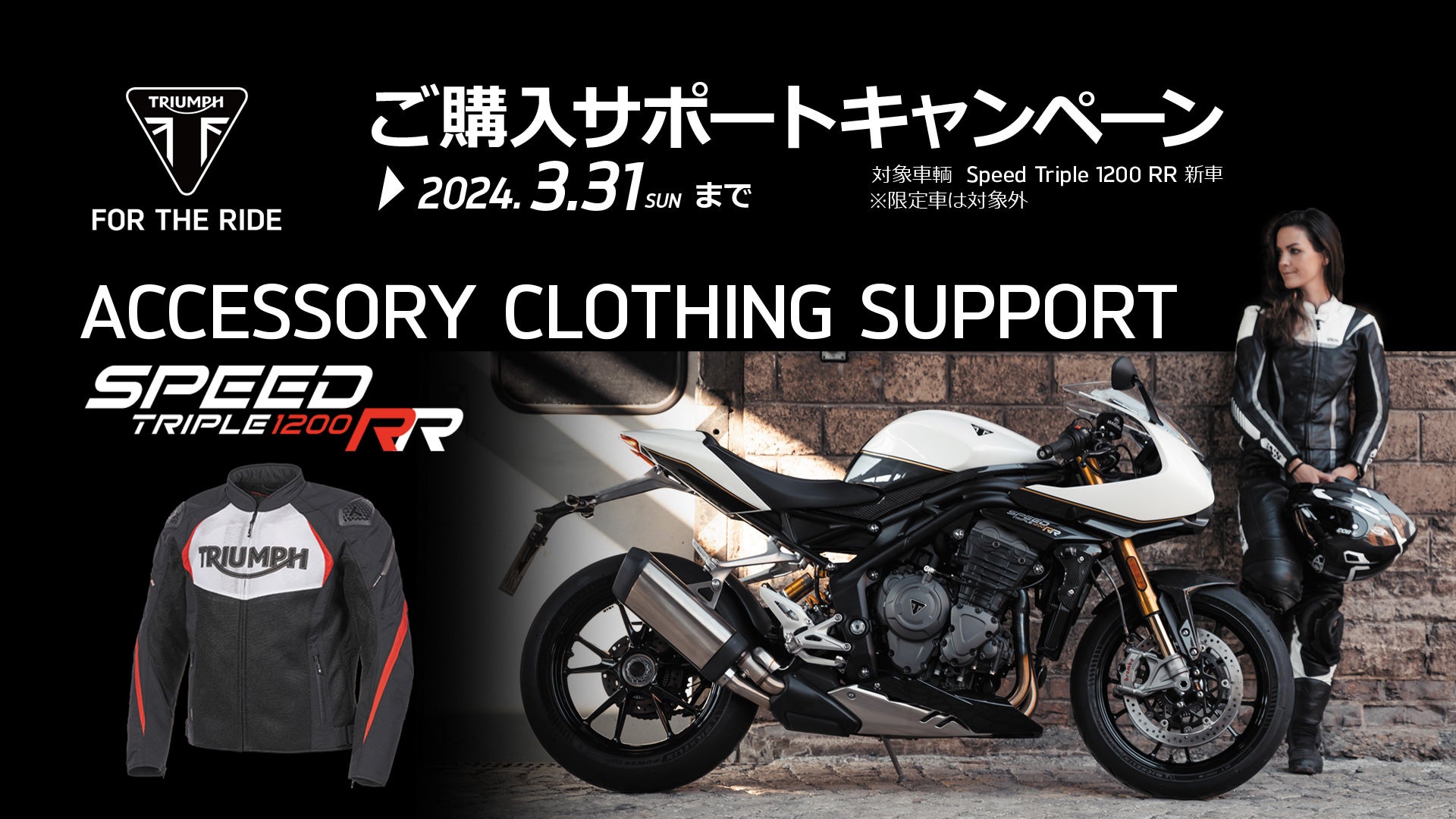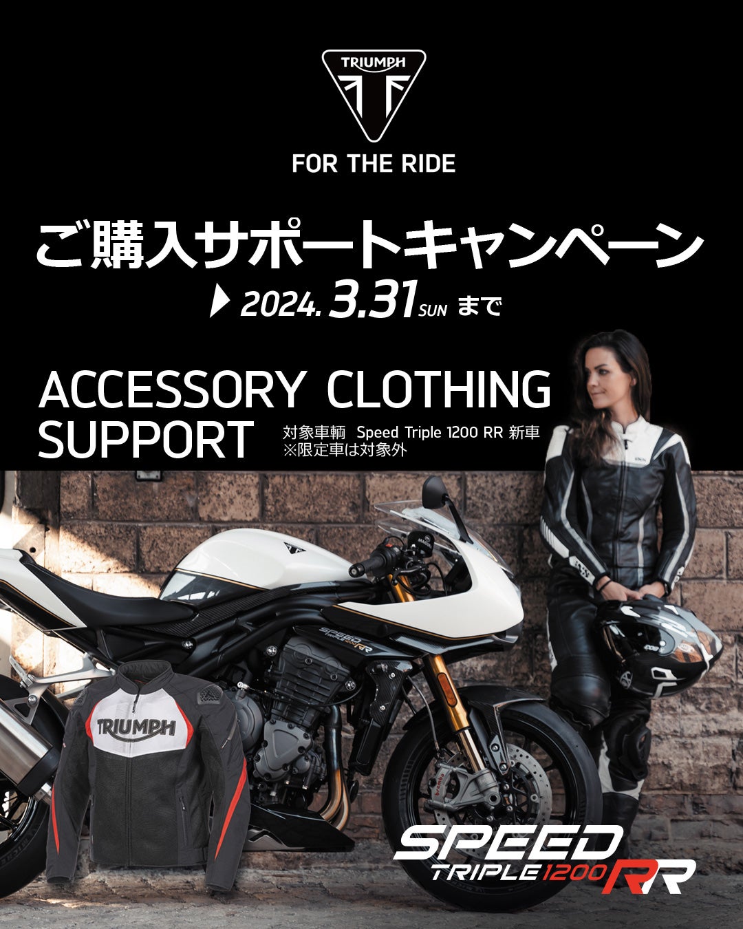 Speed Triple 1200 RR の新車をご購入された方を対象に5万円分(税別)のアクセサリー/クロージング(衣類)をプレゼント!