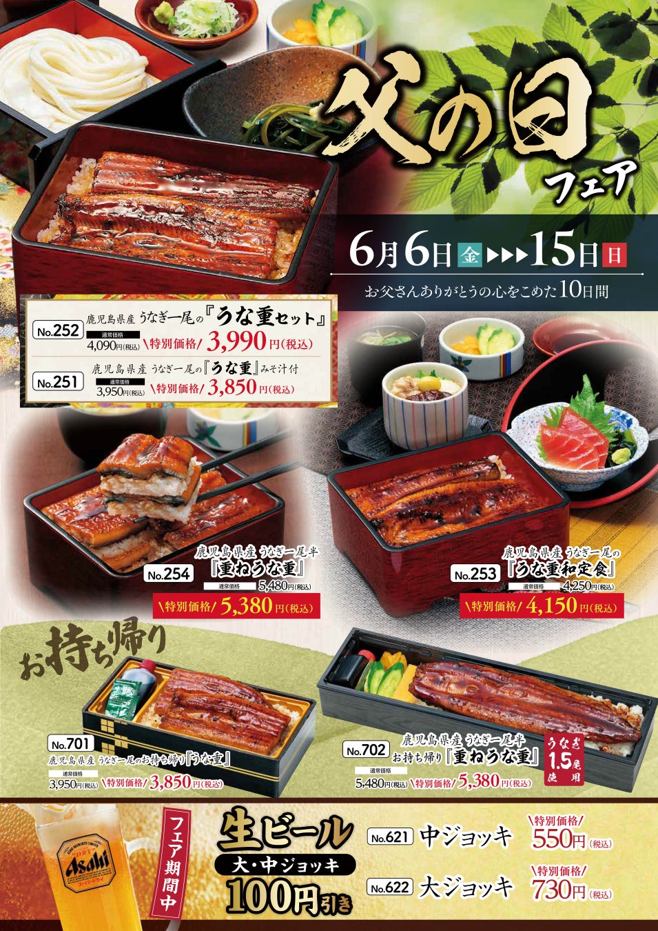 こだわりの鹿児島県産うなぎを特別価格で!「味の民芸」で6月6日から15日まで『父の日フェア』を開催