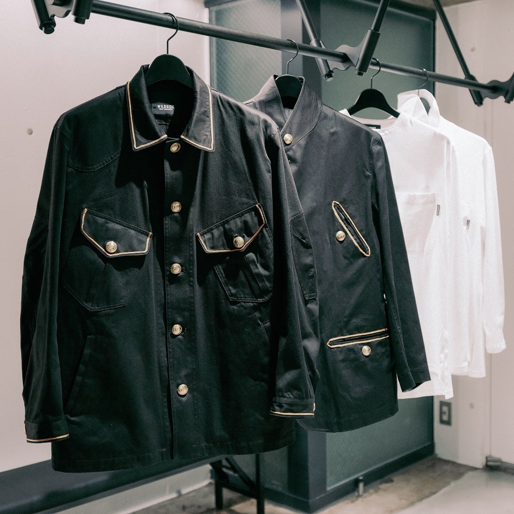 (1) <WILDSIDE YOHJI YAMAMOTO>オリジナルコレクションの中からヨウジヤマモト社アトリエチームがハンドメイドにて金釦やリムを付け加えるなどのカスタムを施した一点物のコットン地ジャケット