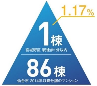 本プロジェクトが誕生する仙台市で2014年以降に分譲されたマンションのうち、駅徒歩1分以内は4棟のみ。宮城野区では本プロジェクトのみとなり、希少性の高さが伺える結果となります。※3