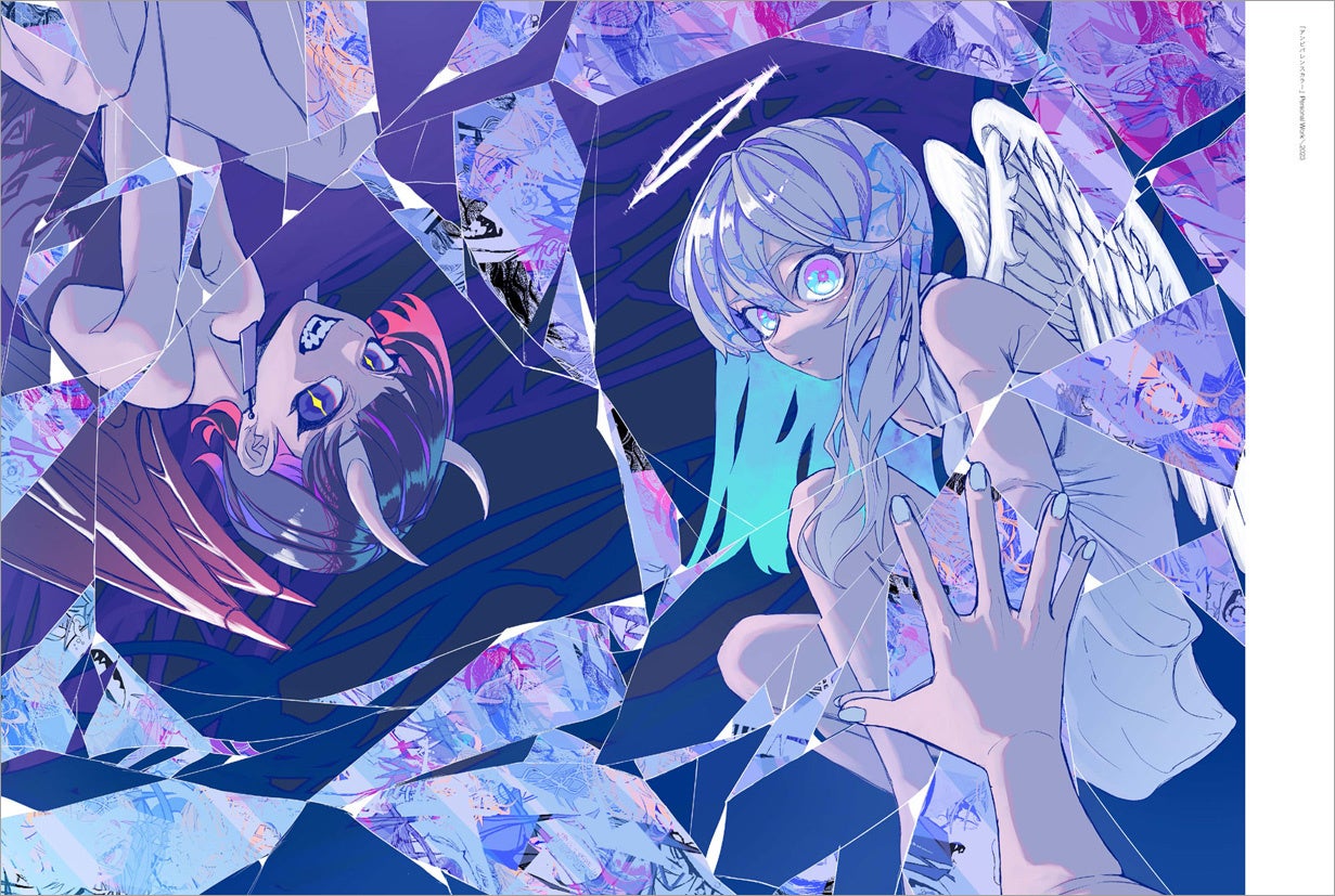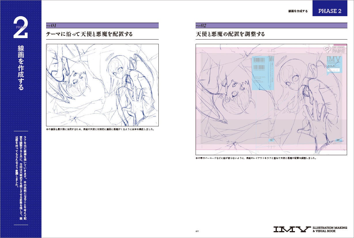 メイキングパートでは、割れた鏡に映る天使(表紙)と悪魔(裏表紙)をモチーフに描かれたカバーイラストの完成までのプロセスを紹介します。