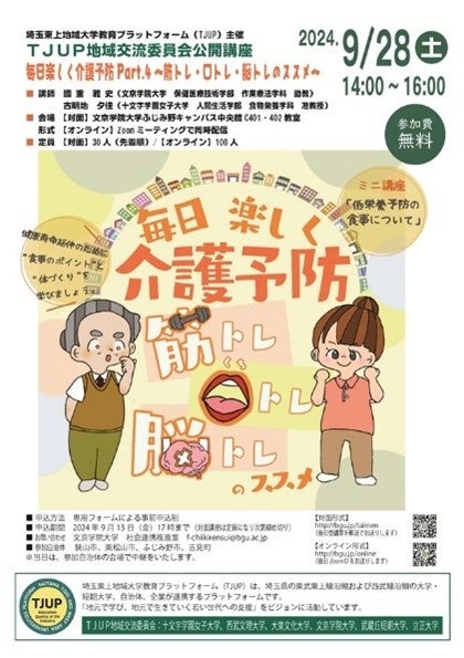 埼玉東上地域大学教育プラットフォーム(TJUP)公開講座×自治体 健康的な日常を過ごせるからだづくりと介護予防を目指す「毎日楽しく介護予防 Part.4 ~筋トレ・口トレ・脳トレのススメ~」開催