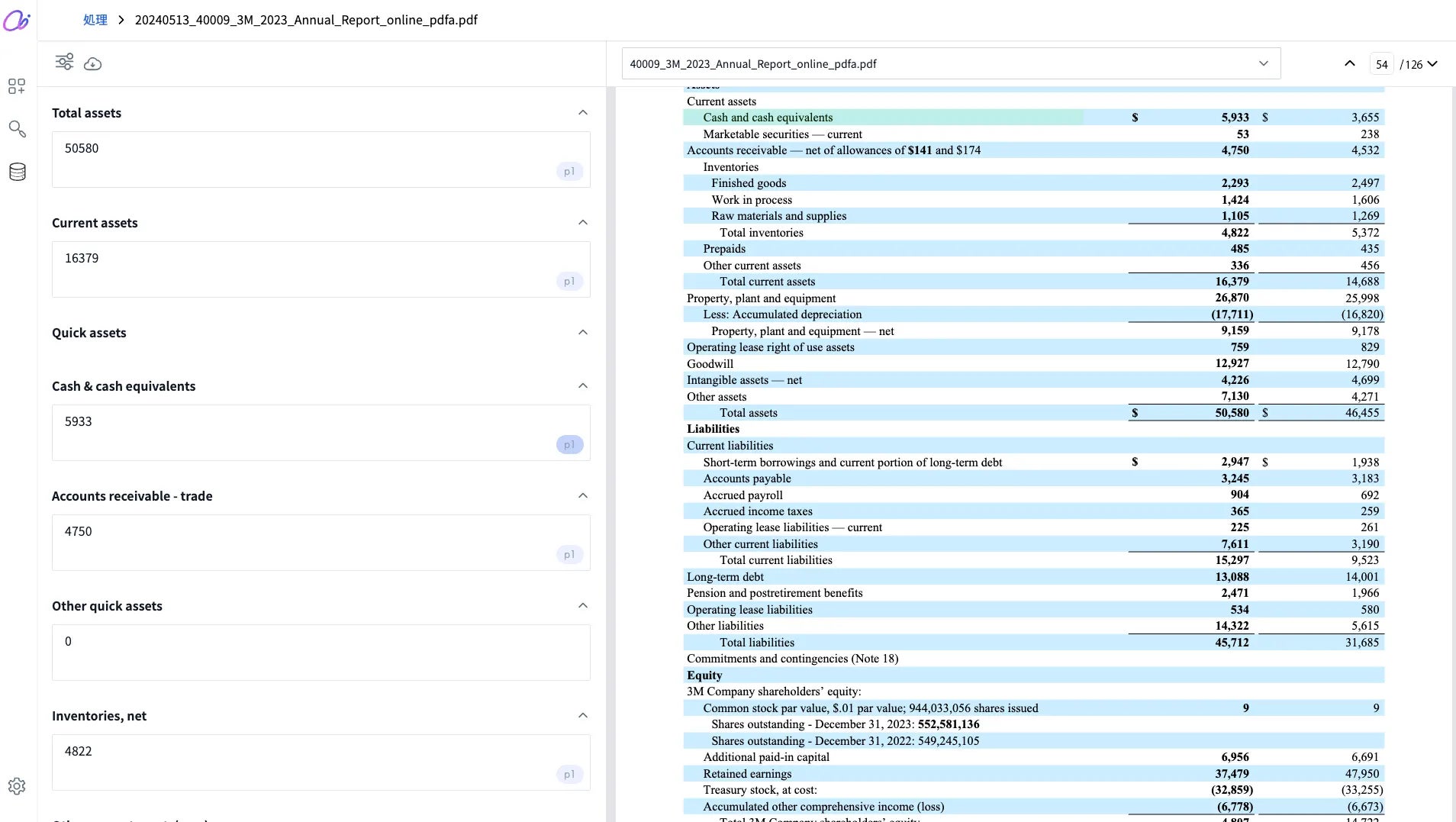 チューニングをしても、AIの出力に誤りが含まれる可能性は完全に排除できないため、人間が結果をレビューすることも重要です。Ai Workforceでは、AIの出力結果の根拠箇所を参照しながら結果を確認・修正することが可能です。この結果をAIの精度向上に活用することもできます。