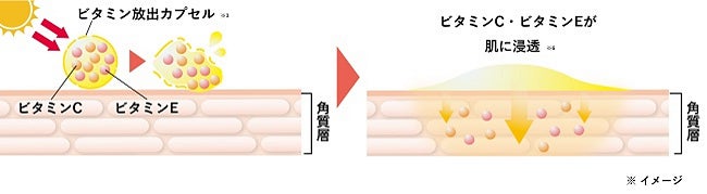 紫外線に反応しビタミンC・ビタミンEを放出して肌の乾燥をケアするビタミン放出カプセル※3を配合。紫外線ブロックに加え、乾燥ダメージケアも行えます。