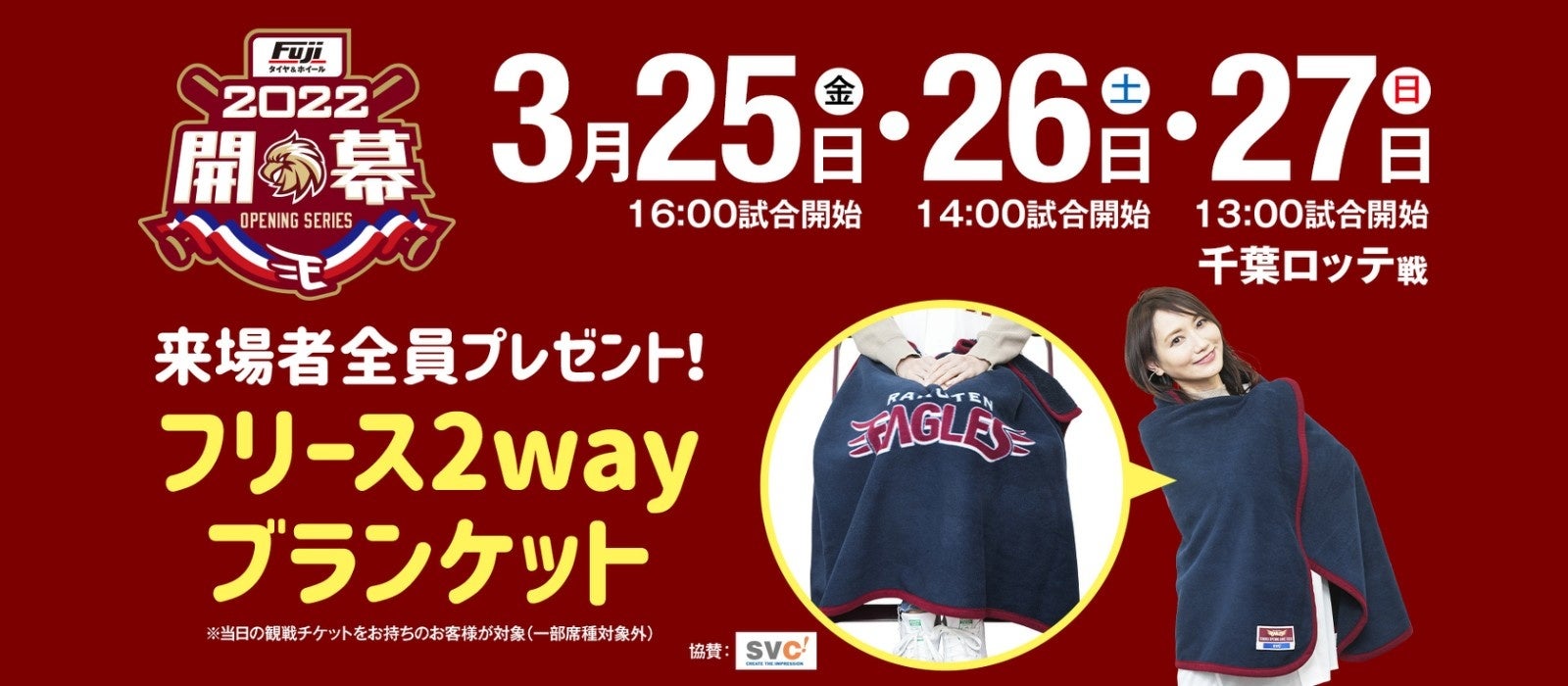 開幕戦3月25日(金)~5月1日(日)楽天生命パーク宮城で開催する一軍公式戦