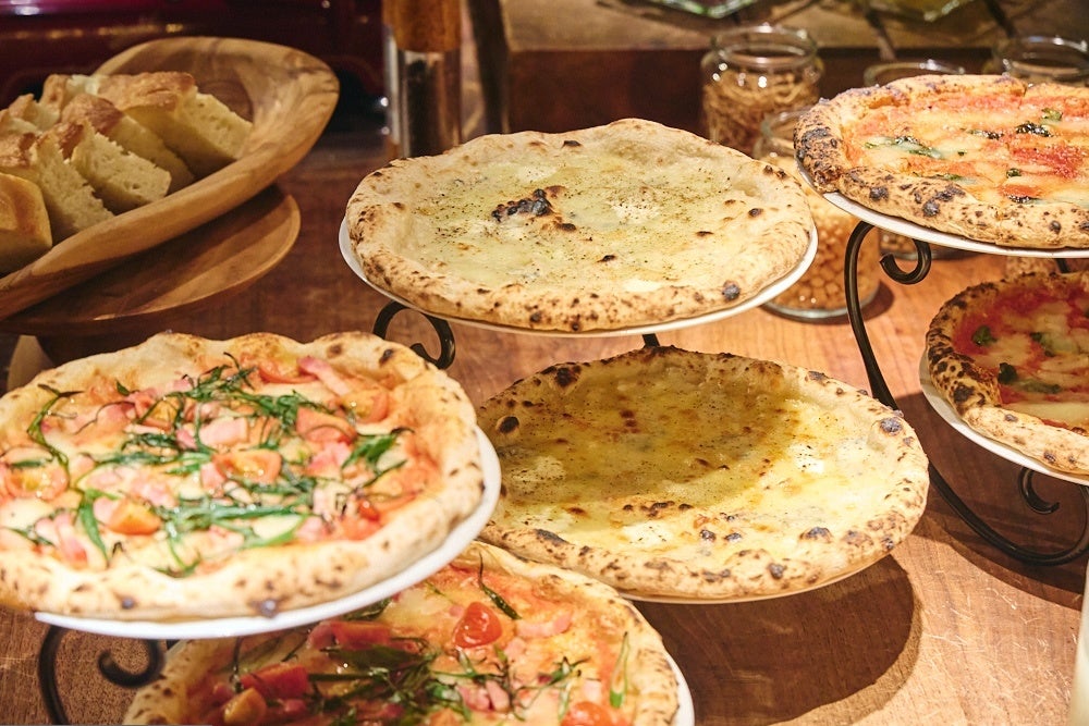 中でもエッセンシャルなランチメニュー“プレミアム・イタリアンビュッフェ”は、種類豊富なサラダバーや季節ごとの食材を活かしたアンティパストをビュッフェスタイルでチョイスする楽しさに加え、選べる肉・魚料理やパスタは、一皿ずつ丁寧に仕上げてテーブルまでお届けするセミコーススタイル。店内中央のカウンターでは、本場ナポリで活躍したピッツァイオーロが窯で一枚ずつ焼き上げたピッツァ数種類が並び、自家製リコッタチーズやイタリアの高級スライサー「ベルケル」を使用したプロシュットをサラダやピッツァにカスタムする贅沢さも。自由さと上質さを兼ね備えた新しいランチ体験をお届けします。