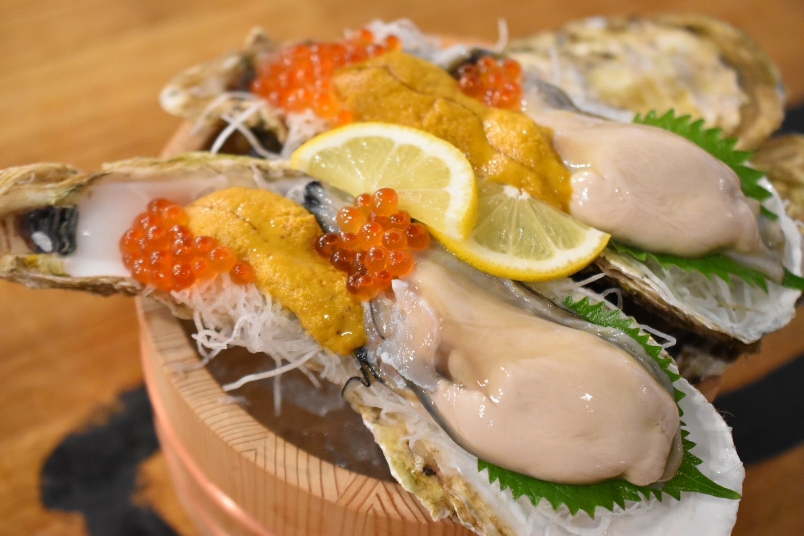 内容:特上生ガキに贅沢すぎるウニとイクラを乗せた至福の一品。