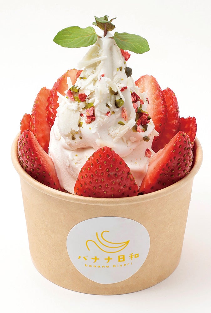 内容:角切りバナナにバナナソフトクリームを合わせ、ドライストロベリーとホワイトチョコレート、ピスタチオをトッピングして贅沢にフレッシュいちごを飾ったクリスマスツリーのようなスペシャルパフェ。