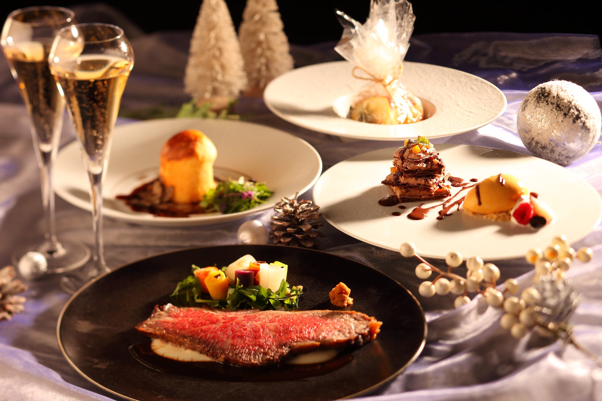 スイーツ以外のクリスマスメニューもたくさん用意しています。また、30階、31階の高層階レストランではクリスマスディナーコースも順次受付しています。最高の夜景とともに、最高のクリスマスディナーをお楽しみください。